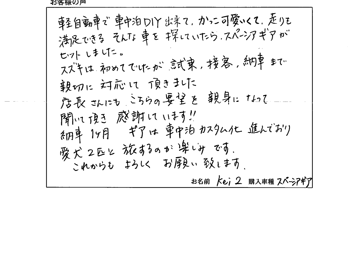 スペーシアギアご成約のお客様のお声 スズキアリーナ三田 お客様の声